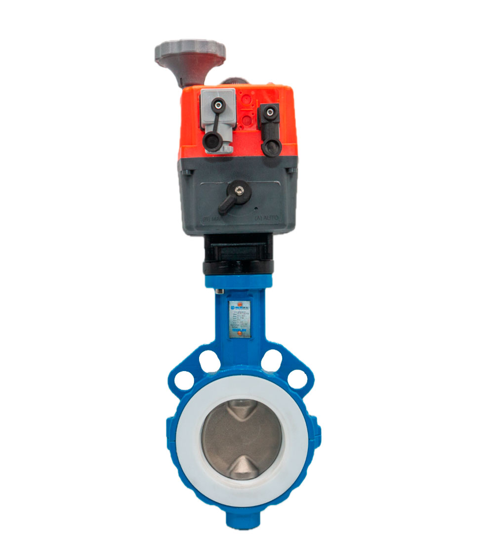 VÁLVULA DE MARIPOSA DISCO INOX TEFLONADA PN16 WAFER CON ACTUADOR ELÉCTRICO